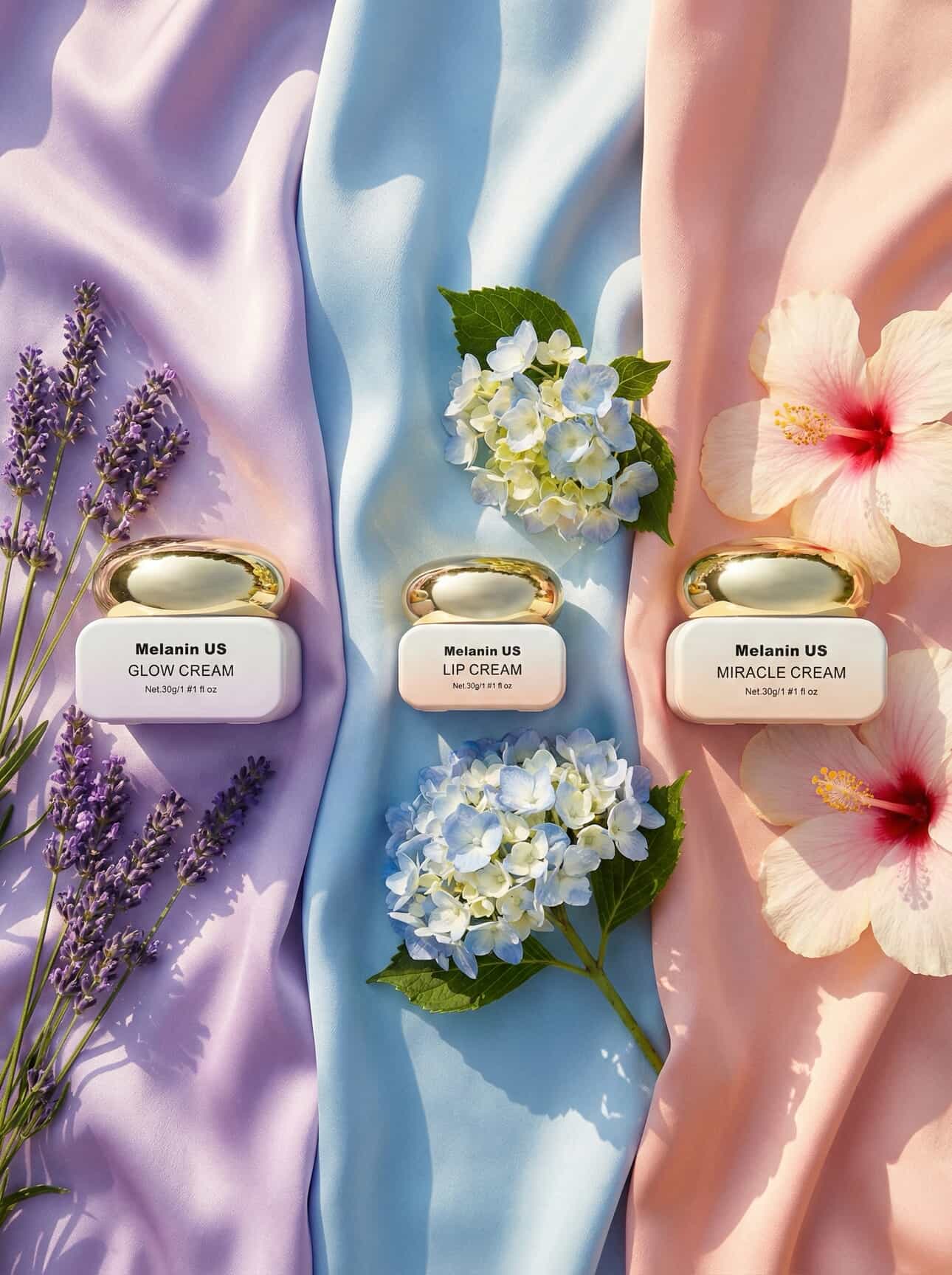 The Melanin Cream Line is designed to gently support melanin care while soothing, hydrating, and improving overall skin tone across different areas of the body.